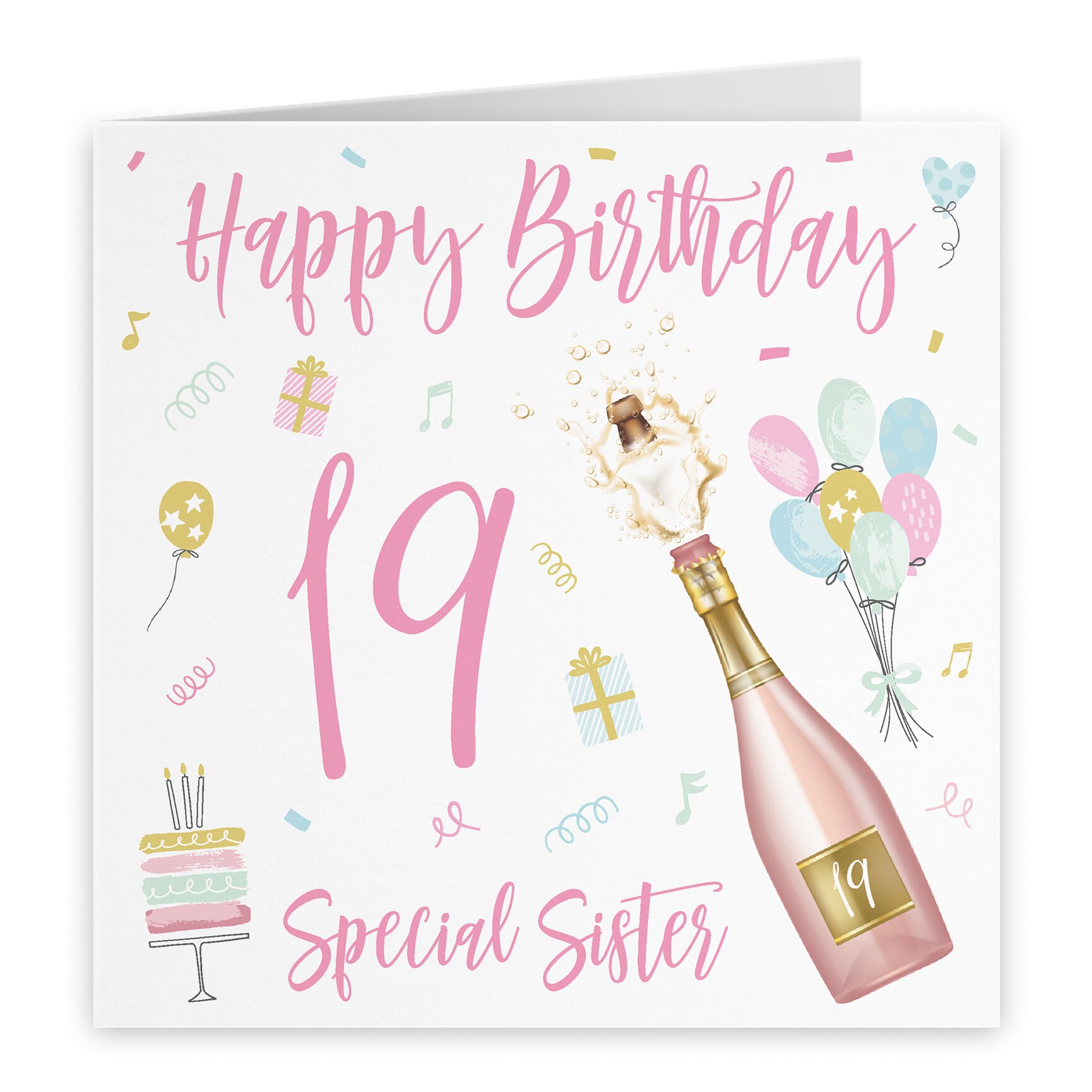 Sister 19th Birthday Card Happy Birthday Sister 19 Champagne Collection Etsy